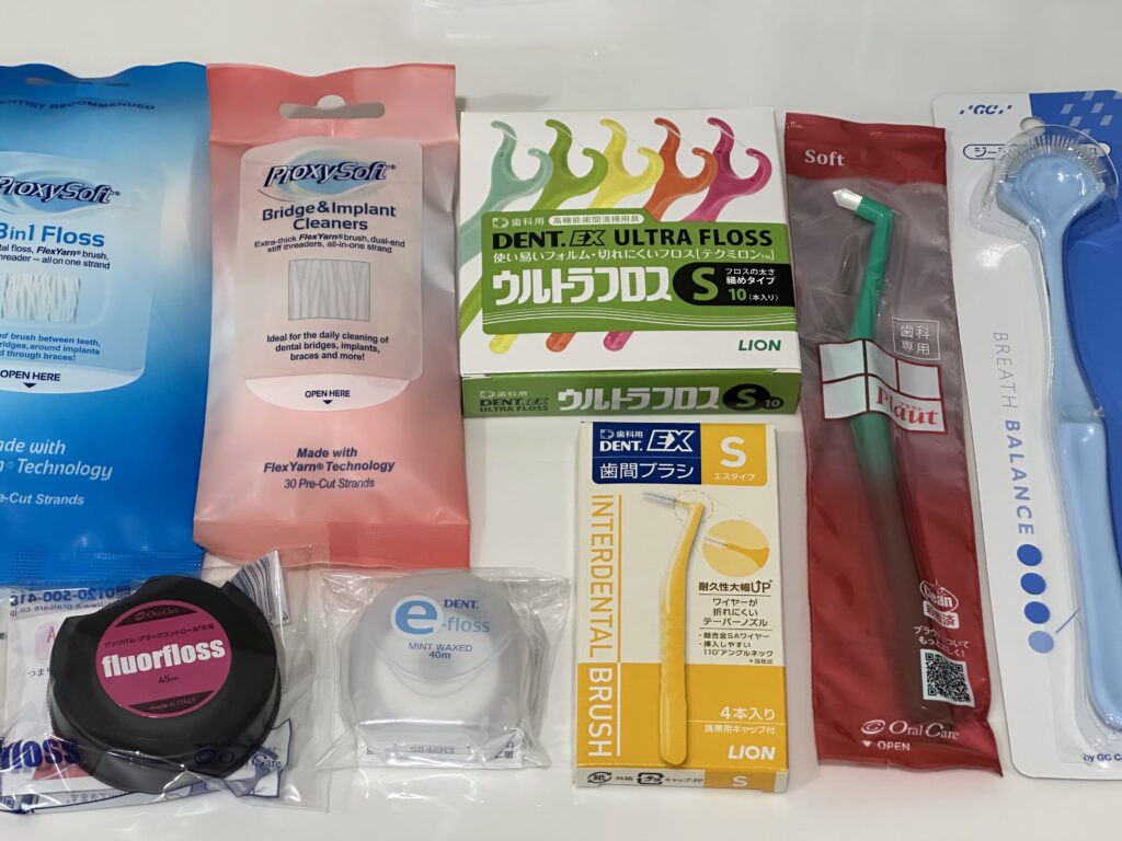 ・歯間ブラシ:歯と歯の間が少し広い方向け。サイズ選びが重要なので、できれば衛生士に相談を。