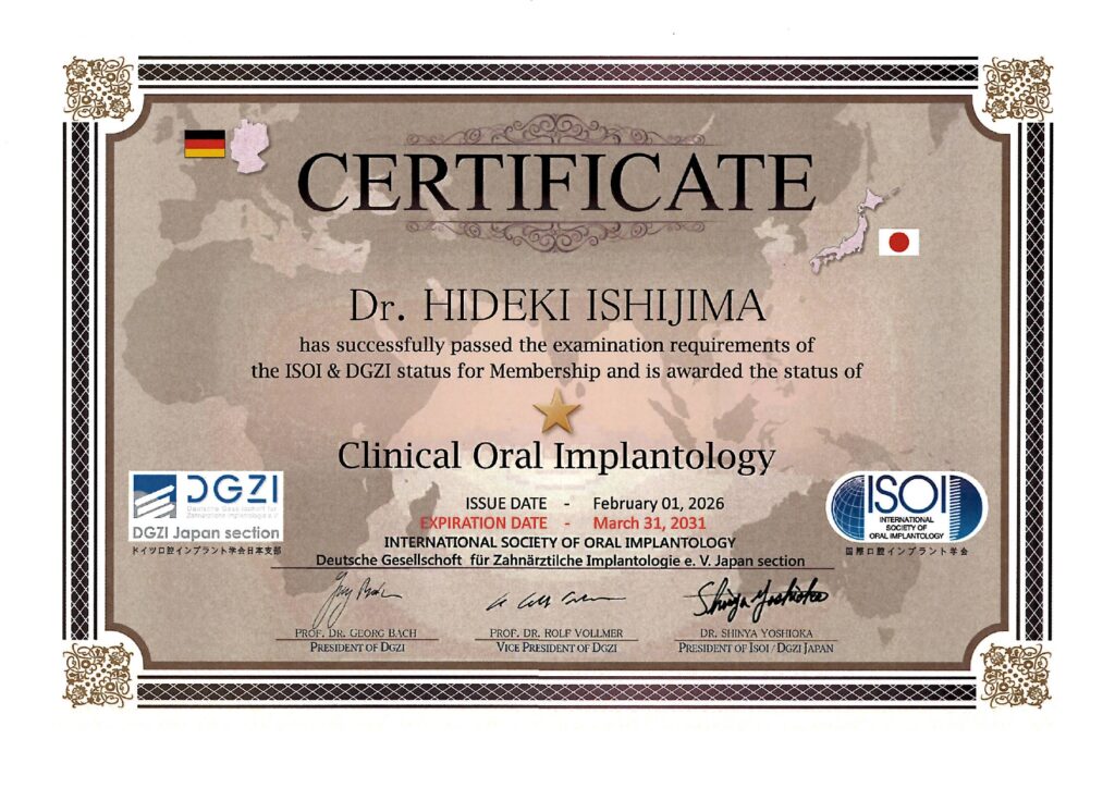 このたび当院の石島先生がISOI国際口腔インプラント学会の認定資格を取得いたしました!